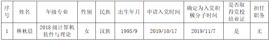 经学院计算机科学与技术本科党支部培养考察,在听取党小组、培养联系人、党员和群众意见的基础上,经支部大会/支委会讨论,确定陈冠宇等11名同志为发展对象。现根据学校发展对象备案制度进行公示,公示期为2021年11月24日-26日。如有意见,请在公示期内当面或通过书信、电话、电子邮件等方式实名反映。联系电话:6836759...