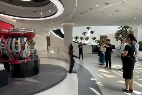 在成都科创生态岛,学院一行在天府新区战略研究局工作人员带领下参观了综合性科技服务平台与科技路演培训区域、科创成果展示平台和科创交流体验平台,感受了新一代人造太阳“中国环流三号”、高海拔宇宙线观测站、中国第四代隐身战斗机歼-20等硬核科技成果,体验了高速动车组模拟驾驶舱、VR沉浸式直播场景等。