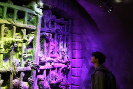 随后,同学们分组开展主题研学活动,四个小组分别前往博物馆的各个展厅进行观展、记录、学习。在“抗战岁月”展区,同学们仿佛穿越回了那段硝烟弥漫的岁月,深刻感受到了中华民族在抗日战争中展现出的英勇无畏和坚韧不拔精神,在“壮丽三峡”展区,同学们被三峡地区秀美的自然风景所震撼;在“远古巴渝”和“重庆城市之路”展区,同学们深入了解了巴渝地区的历史变迁和重庆城市的发展脉络;在“历代铸币”“汉代雕塑艺术”等展区,同学们被西南地区独特的人文历史和民族风情所吸引。参观过程中,同学们纷纷驻足拍照、记录心得。徐梓涵谈到“这次参观让我深刻感受到了重庆厚重的历史和文化底蕴。我为自己是一个中国人而自豪,也为能够生活在这片充满活力和希望的土地上而感到幸福。”