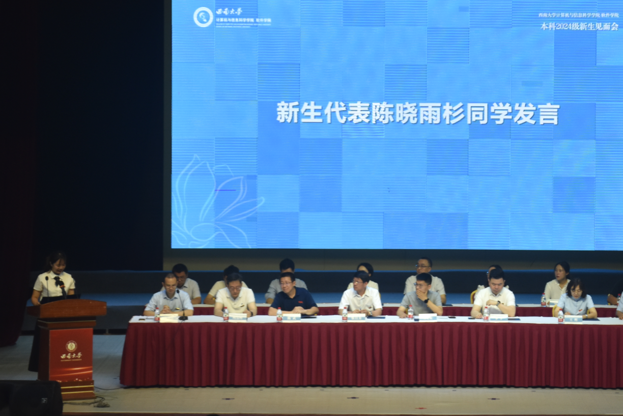2024级新生代表陈晓雨杉分享了从高考备战到进校报到的心路历程,展现了对大学的憧憬,号召新同学们用心体验大学生活,好好珍惜大学时光,用智慧和青春书写人生篇章。