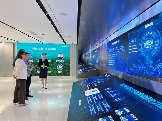 校友也分享了他们的职业发展经历。在企业展馆中,学院一行参观了海信集团在智慧交通、智慧教室、精准医疗和芯片等领域的前沿技术与设备。双方表示将以此次交流座谈为契机,进一步扩宽校企合作的广阔空间,为人才培养与高质量就业奠定坚实的基础。