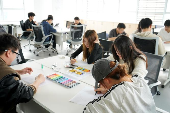 在小组共创环节,各小组成员们首先进行了自我介绍,然后在印有直径约20公分圆圈的A4纸上随性涂鸦,用各自独特的方式表达出内心想传递的情绪。在个人创作完成后,小组成员共同商讨,在纸上进一步围绕情绪圆圈绘制出内心的风景,最终共同完成了一系列充满创意与情感的作品。