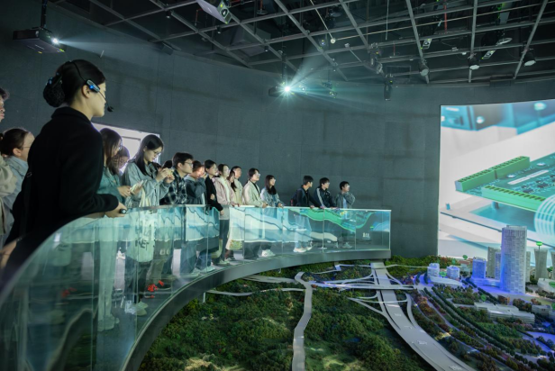 开班仪式在团歌声中结束。随后,杨靖欣老师与夏浩然老师带领学员们前往重庆渝北区仙桃国际大数据谷,进行实地研学。
