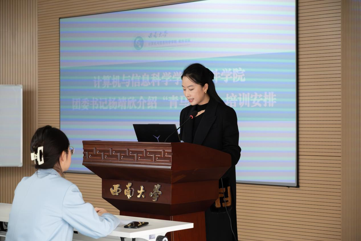 图3:团委书记杨靖欣介绍“青马工程”培训安排