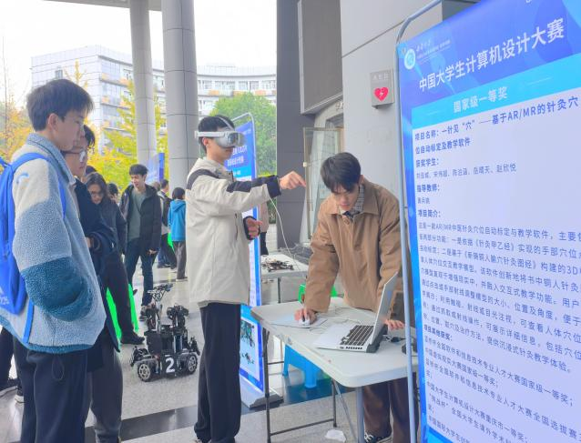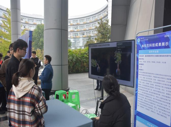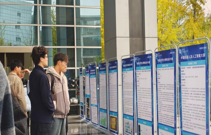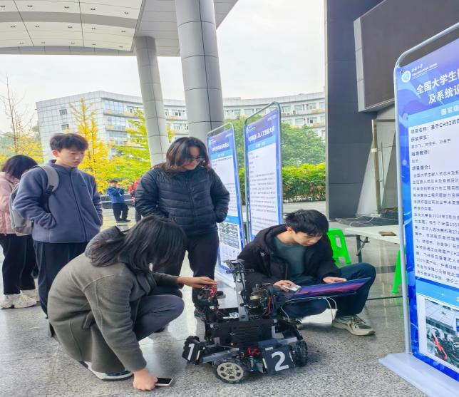 11月29日下午,本科生课外学术科技成果展示活动在25教一楼平台举行。本次活动展出了2024年中国国际大学生创新大赛、ICPC国际大学生程序设计竞赛、中国大学生计算机设计大赛、中国机器人及人工智能大赛、全国大学生嵌入式芯片及系统设计竞赛等各大科技竞赛中斩获的重要奖项。同时展出的还有国家级大学生创新创业计划立项项目以及创新硬件和软件科技成果,如投影补偿技术、基于结构光的三维扫描技术、影随飞——姿态驱动的无人机控制及目标追随系统、基于CH32的四旋翼无人机系统、一针见“穴”——基于AR/MR的针灸穴位自动标定及教学软件、面向物理世界的三维真实感动态仿真平台、基于仿真环境的全维度感知目标检测与对抗攻击任务等成果。活动充分展示了学院本科生的科研实力和创新能力。现场氛围活跃,吸引了大批师生关注,同学们表现出极高的参与热情,纷纷停留观看并亲身体验。活动还特别邀请了华为鸿蒙智行,为同学们提供M5、M7、M9三款智驾车型的试驾体验,感受科技与生活的完美融合。