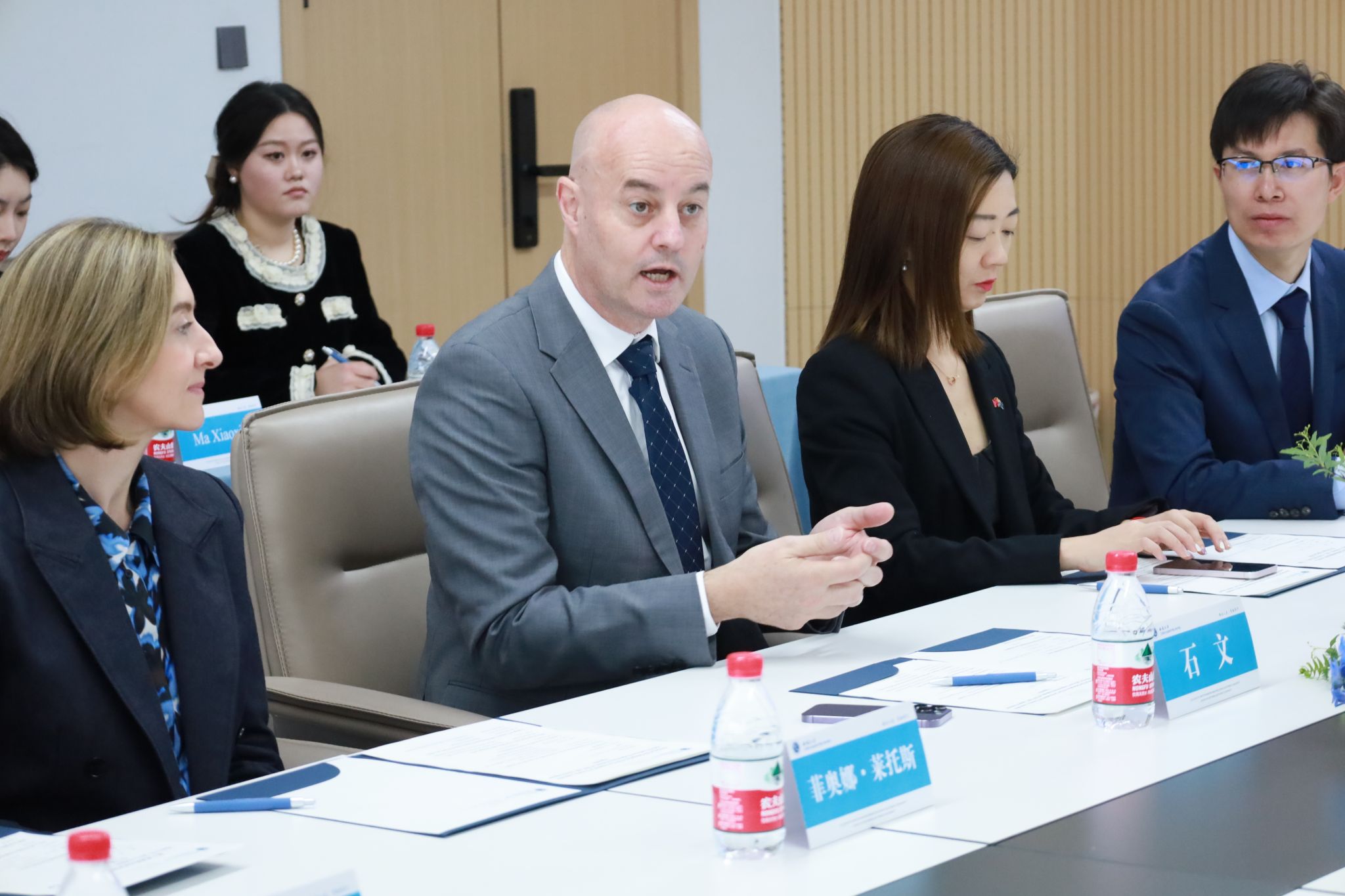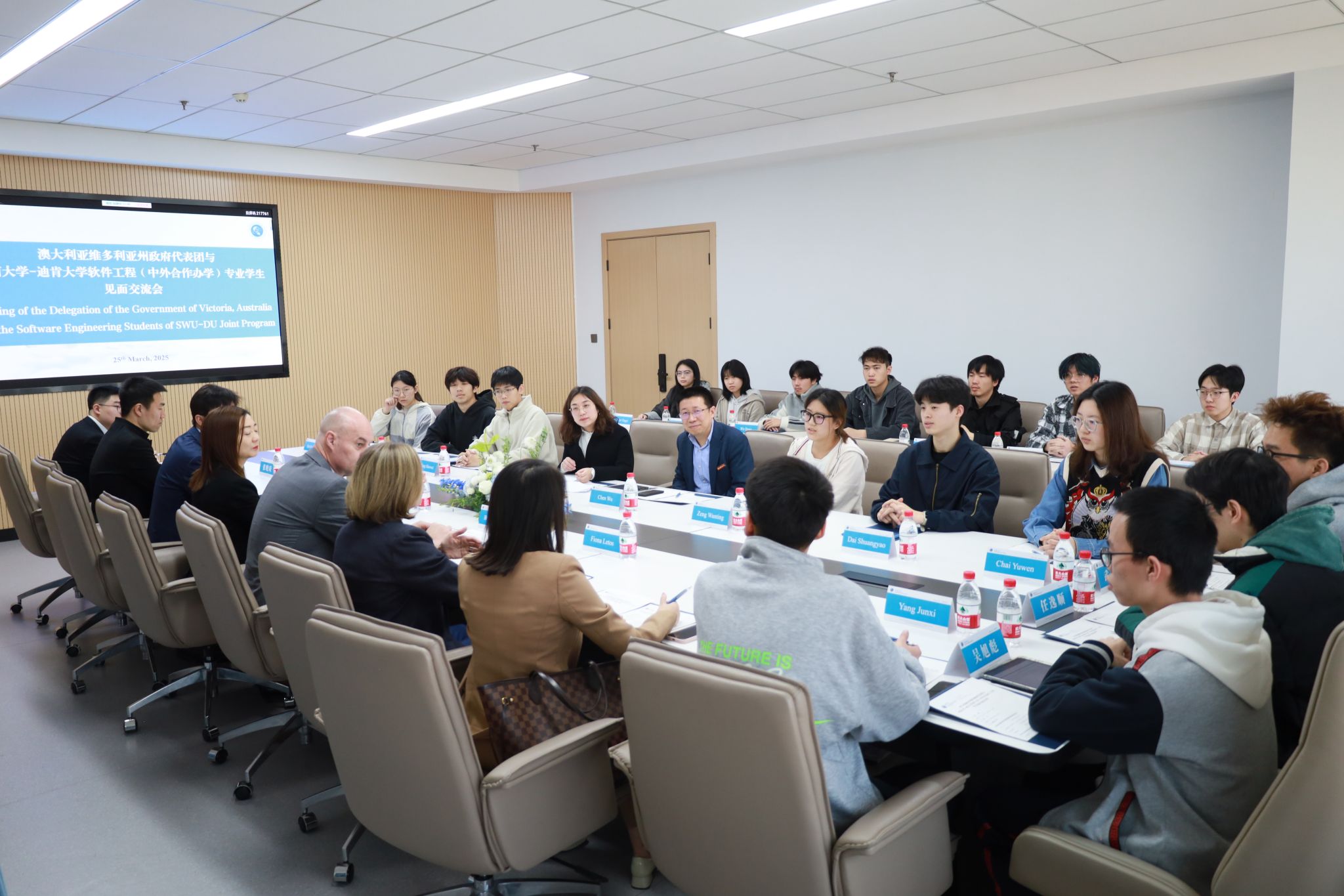 2025年3月25日上午,澳大利亚维多利亚州政府代表团与学院软件工程(中外合作办学)专业学生见面交流会在25教1314会议室举行。澳大利亚维多利亚州贸易投资成都代表处驻中华区特派专员石文(Brett Stevens),政府贸易、全球参与及国际教育事务部执行主任菲奥娜·莱托斯(Fiona Letos),大中华区副专员杜纬遥,教育服务主任陈维妙;中华人民共和国共和国驻墨尔本总领事馆李林泽副领事;天涯社区