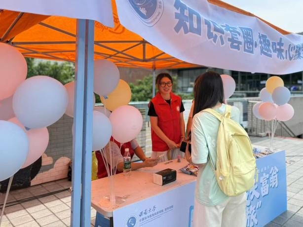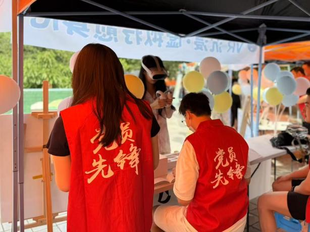 5月25日,学院“5・25”心理健康节活动在各个学生园区举行,党员忙碌在各个展台,他们的红色身影成为了一道亮丽的风景。活动现场,毕业生党员们分工明确、热情高涨。在“心理知识趣味套圈”区域,他们耐心引导参与者了解心理知识,维持现场秩序;“VR设备沉浸疗愈”区,党员们细心协助体验者佩戴设备,确保其安全舒适;“智析心灵代码盲盒”处,他们认真讲解规则,助力参与者探索心灵奥秘;“多肉绿植废品焕新”摊位,党员们协助参与者用废品制作绿植容器,传递环保与治愈理念。