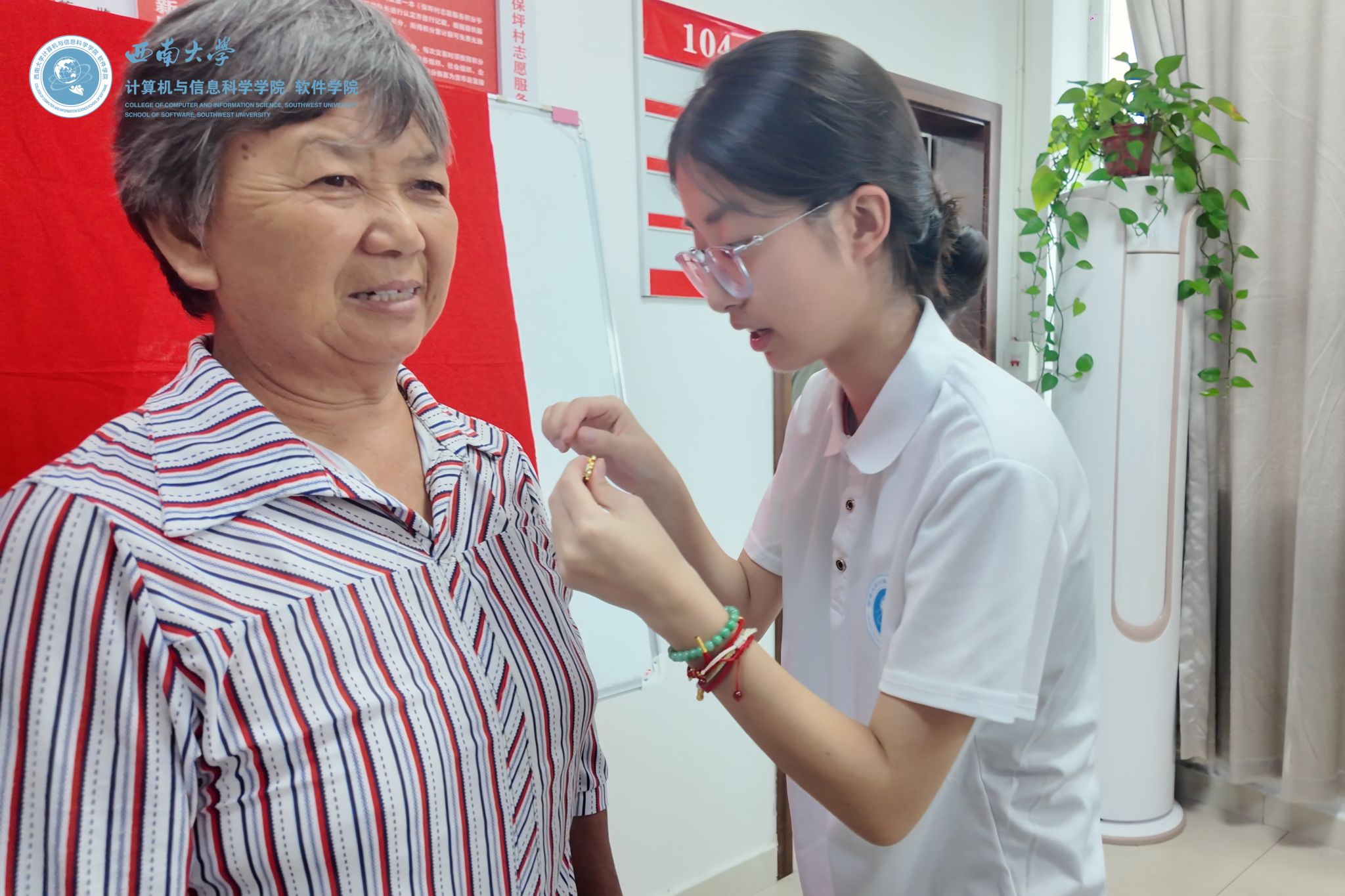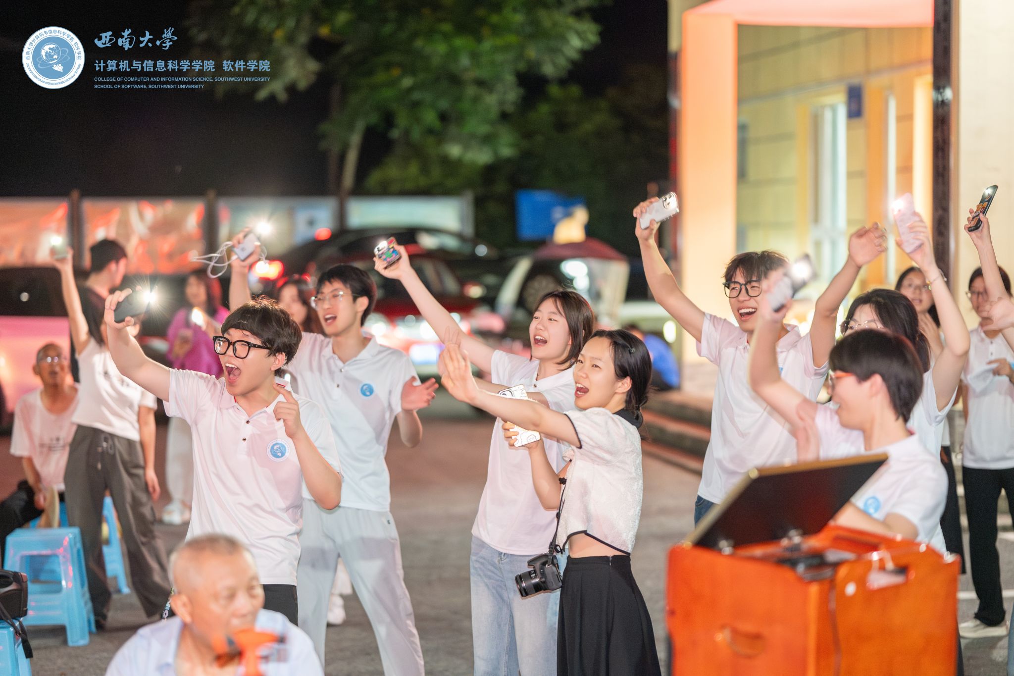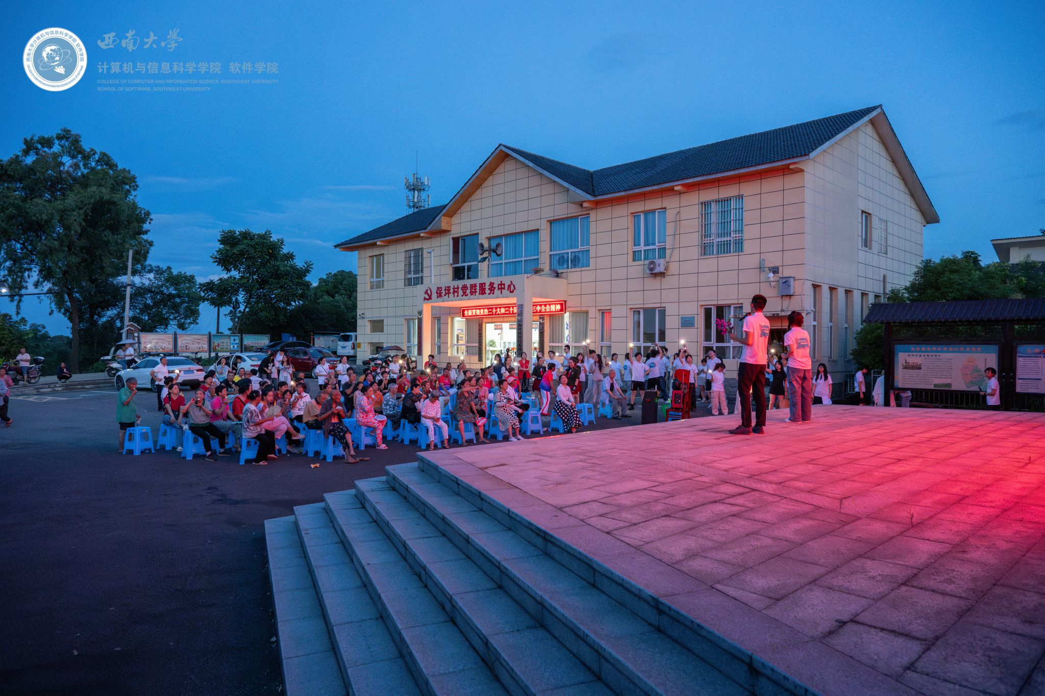 为庆祝党的生日,团队与村民共同策划了“码上传情,青春礼赞”主题文艺晚会。晚会节目形式多样,精彩纷呈:大合唱激昂澎湃,方言三句半诙谐幽默,悠悠球表演灵动酷炫,防诈情景剧寓教于乐。当地舞蹈队的奶奶们身着彩衣,用曼妙舞姿为晚会增添了浓郁的乡土气息。从前期筹备到现场演出,团队成员与村民紧密协作,在欢声笑语中共庆党的华诞,展现了青春与乡村的激情碰撞。