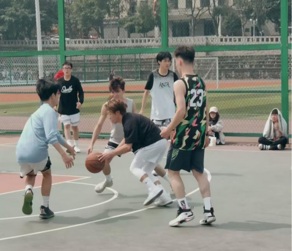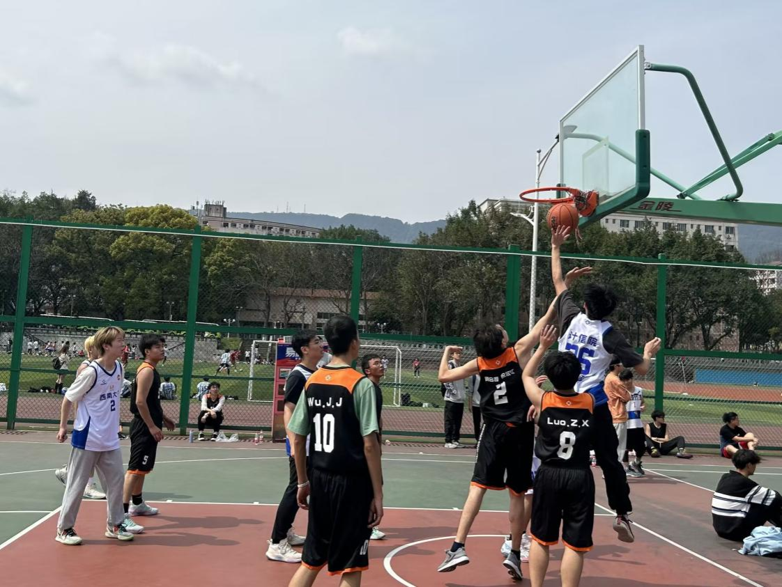 赛场上,同学们神采飞扬、挥洒汗水,奔跑、传球、投篮,引发现场观众阵阵喝彩。篮球队员们的每一次进攻与防守都全力以赴,不断将比赛赛场的气氛推向高潮。
