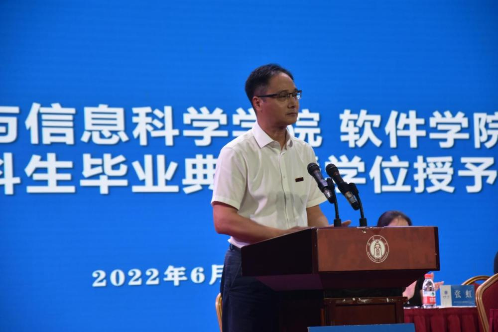 学院院长肖国强教授代表全院教师为本科毕业生们献上诚挚的祝福,他回顾了毕业生们获得的各种奖项,并表示当前世界处于百年未有之大变局,期待在座毕业生能够为祖国和人民肩负起时代责任。同时,肖国强院长对毕业生们提出三点期许:第一要志存高远,脚踏实地;第二要勤学深思,自强不息;第三要懂得感恩,甘于奉献。