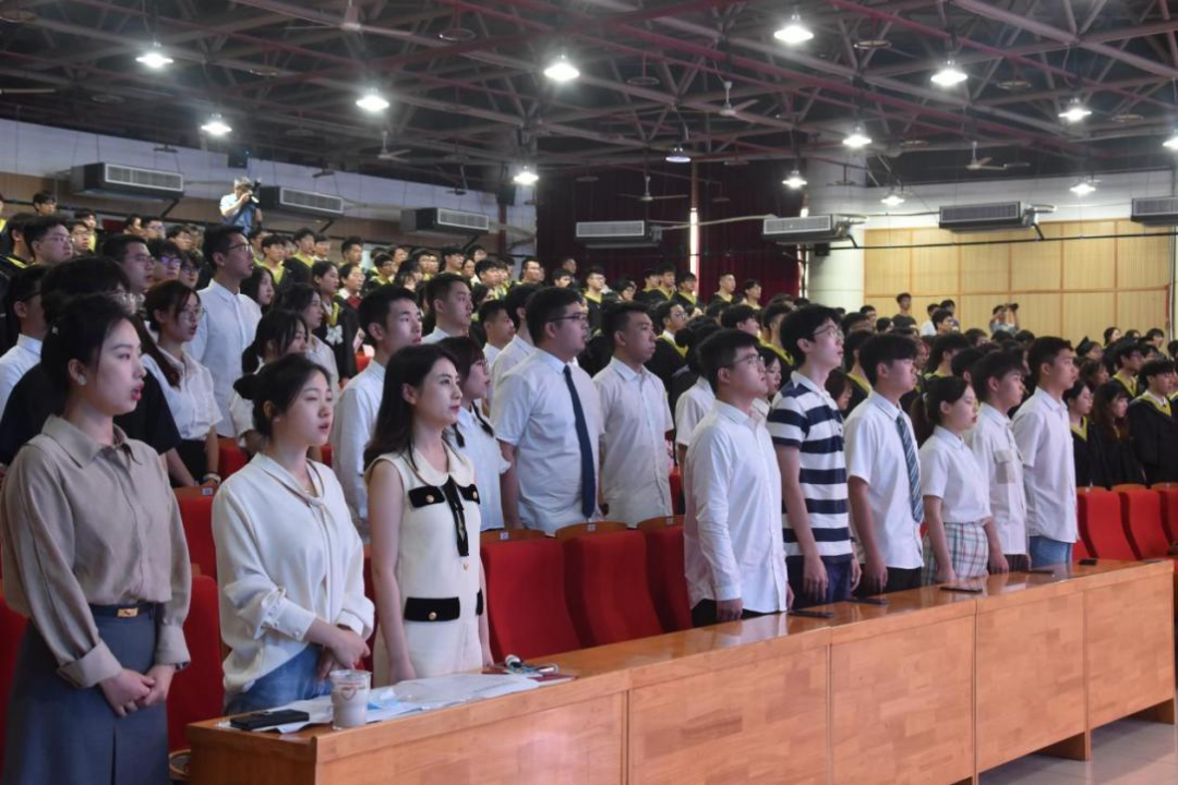 2022届本科生毕业典礼暨学位授予仪式在学校圆顶三楼报告厅隆重举行。参加会议的有学院党委书记孙楚航,院长肖国强,党委副书记刘作勋、陈智,副院长陈武、陶丽,学院学术委员会委员、各系室主任、教师代表、全体辅导员以及全体在校毕业生。