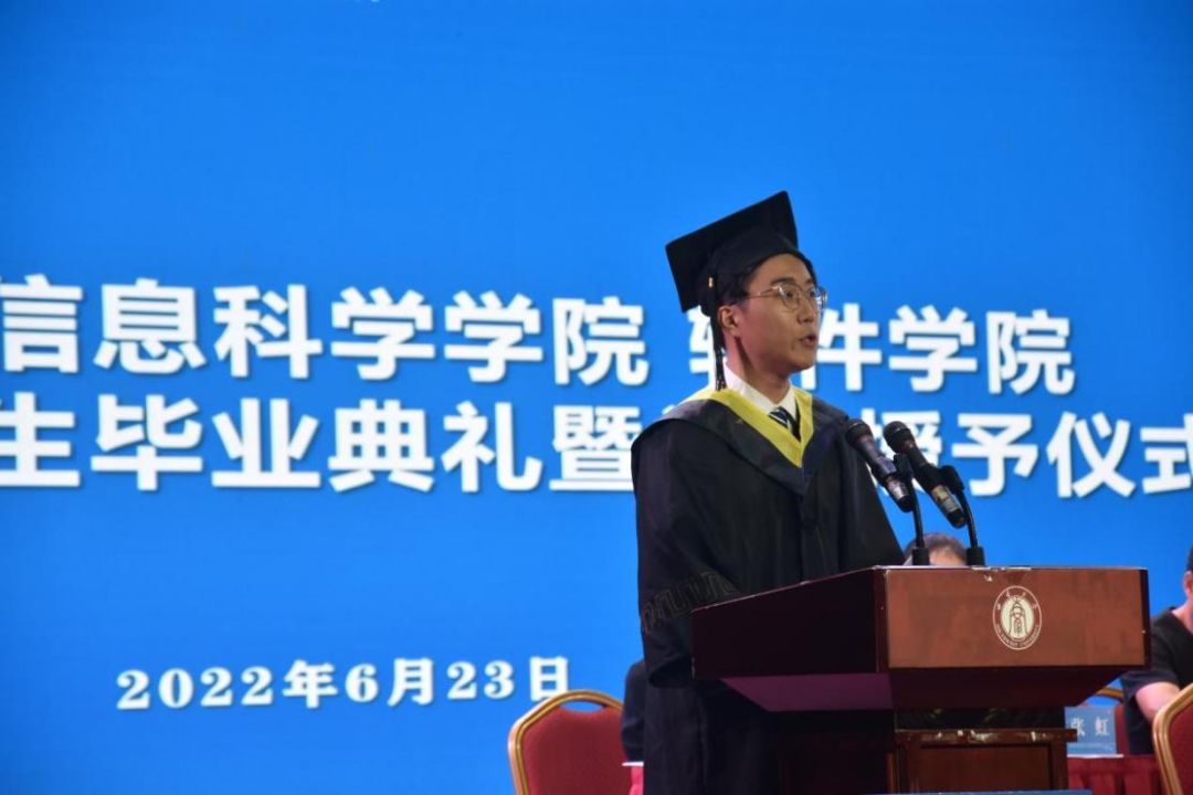 2018级软件工程专业学生宋行健代表毕业生发言,他在发言中讲到,在天涯社区