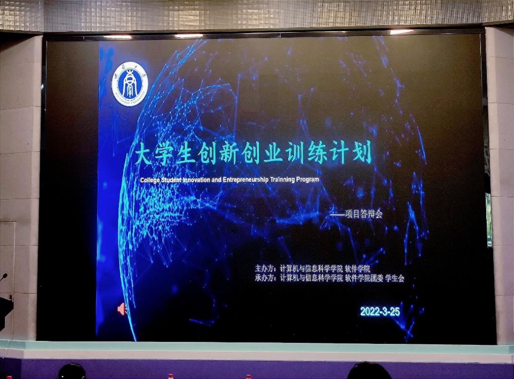 在25教一楼报告厅举办了大学生创新创业训练计划项目答辩会。答辩会共有20余支队伍参加,廖剑伟、瞿泽辉、杨照芳老师担任评委。