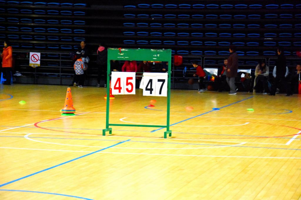 篮球在空中飞舞旋转,球员们不停变换防守进攻的姿势,他们飞快的速度,精准的抢断,尖锐的打破局势。教师队不断拉近比分,一次又一次的进球哨声为他们注入力量。学生队也不甘示弱,发挥全部身手,拦截抢夺,不留给对方可乘之机,最终将比分定格在47vs45。