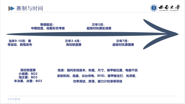 招杰森同学作为学院GKD机器人竞赛团队的核心成员,有着丰富的机器人竞赛经验,这次他深入分享了关于RoboMaster机甲大师超级对抗赛(RMUC)的方方面面。他强调这项赛事融合了多学科知识,采用创新电竞形式,涵盖超级对抗赛和高校联盟赛两大类别。每个赛季,参赛机器人都需要根据新规则和赛制进行调整优化。2024-2025赛季将要求参赛队伍研发不同类型和功能的机器人在指定场地对抗。