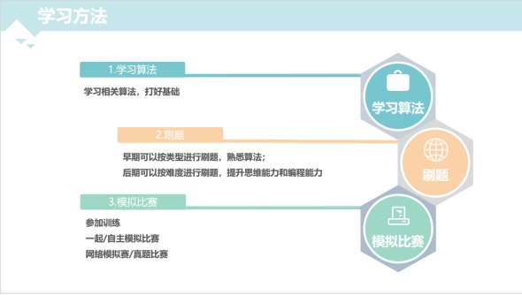在学习方法层面,陈雯丽提出了三项学习策略,并推荐了一些实用的在线资源。她建议大家系统地学习相关算法,打下坚实的理论基础;其次通过大量刷题来提高算法应用能力,早期可以按类型分类练习,后期挑战更高难度的题目以锻炼思维和编程技巧;最后,积极参与各种形式的训练,包括与队友共同训练、个人模拟比赛、网络模拟赛和真题比赛等。她特别推荐的几个学习网站包括洛谷、牛客、力扣和codeforces,这些平台为程序设计爱好者提供了丰富的练习资源和交流机会。