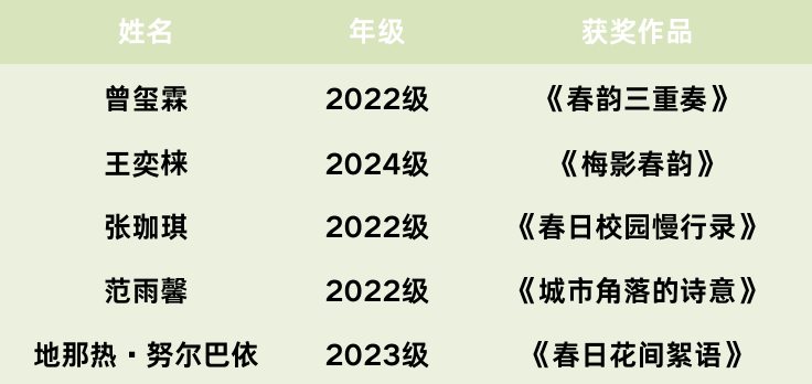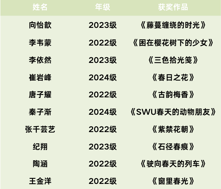每一幅作品都是春天的宝藏,珍藏着计信学子们眼中的烂漫春光与蓬勃生机。诚挚感谢每一位参赛者的热情付出与精彩呈现,你们以镜头为笔,以光影为墨,绘就了一幅幅春天的绚丽画卷。愿同学们在未来的日子里,继续保持对生活的热爱,捕捉更多美好的瞬间,让每一个平凡的日子都如春天般绚烂多彩。