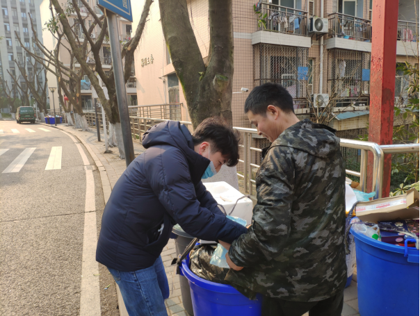 路边的快递小哥正在忙着整理快递,听完支部同志的介绍之后,小哥表示,这种志愿活动十分有意义,希望以后可以多开展类似的活动。