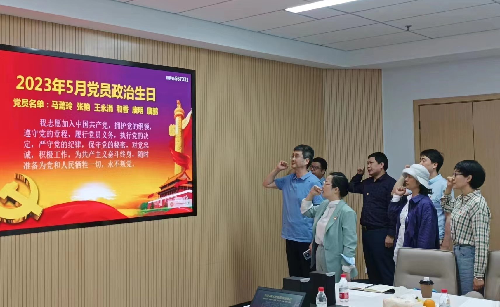 最后全体党员为六位党员同志过了政治生日。