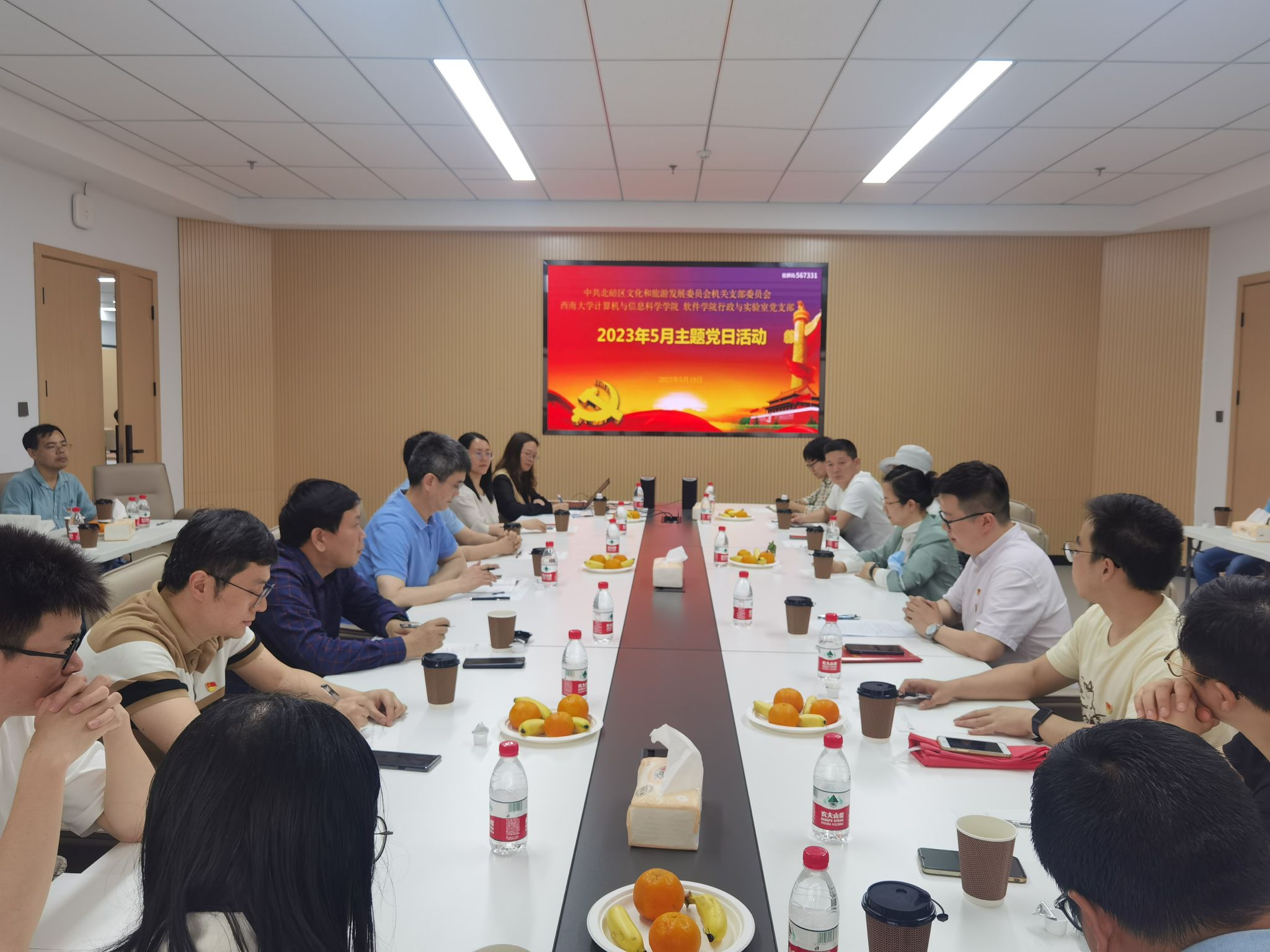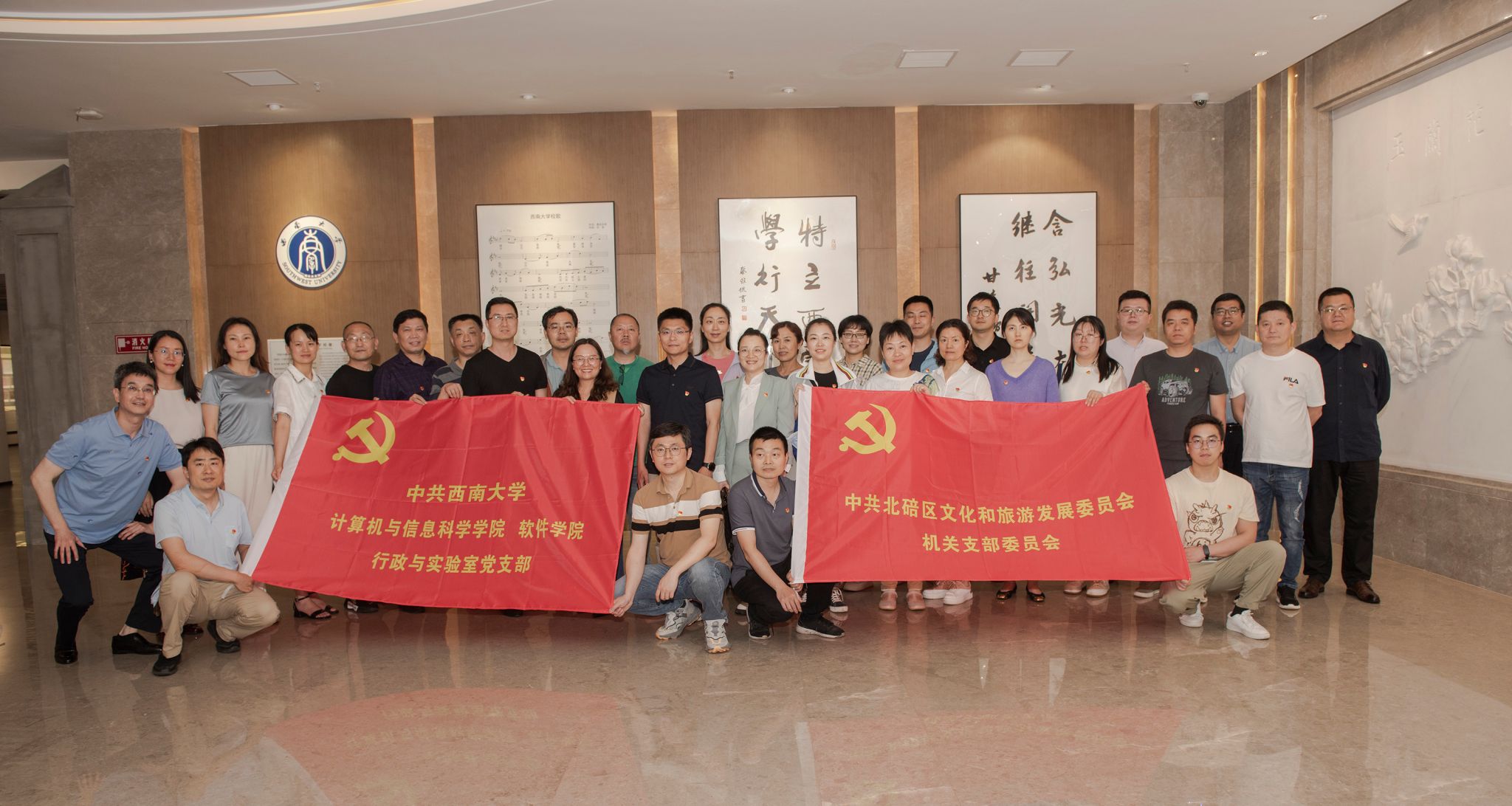 5月19日下午,为深入学习贯彻党的二十大精神和习近平新时代中国特色社会主义思想,进一步增强党员干部的凝聚力、创造力、服务力,以实际行动更好地服务学院高质量发展,我院行政与实验室党支部联合北碚区文旅委机关党支部联合组织开展支部共建活动。两个党支部三十名党员同志参加了活动,学院党委书记孙楚航主持了启动仪式。