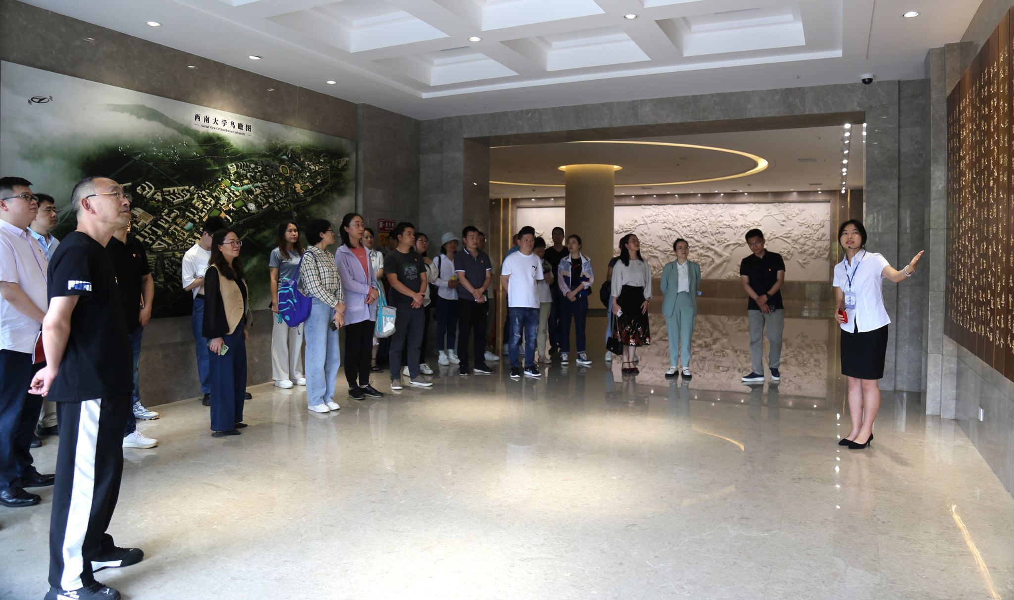 组建等重大历史阶段成就。从现场展出的大量档案文献、图片图表,以及历史场景复原、沉浸式教学感受、多媒体影音体验等多种展陈形式中,学习了“百年学府、杏坛育人、劝课农桑”伟大壮举在中国大地的传播和发展,重温了110年办学历史,再次感悟到“含弘光大、继往开来”的校训内涵,以及“特立西南、学行天下”大学精神,一起汲取奋进新时代的澎湃力量。