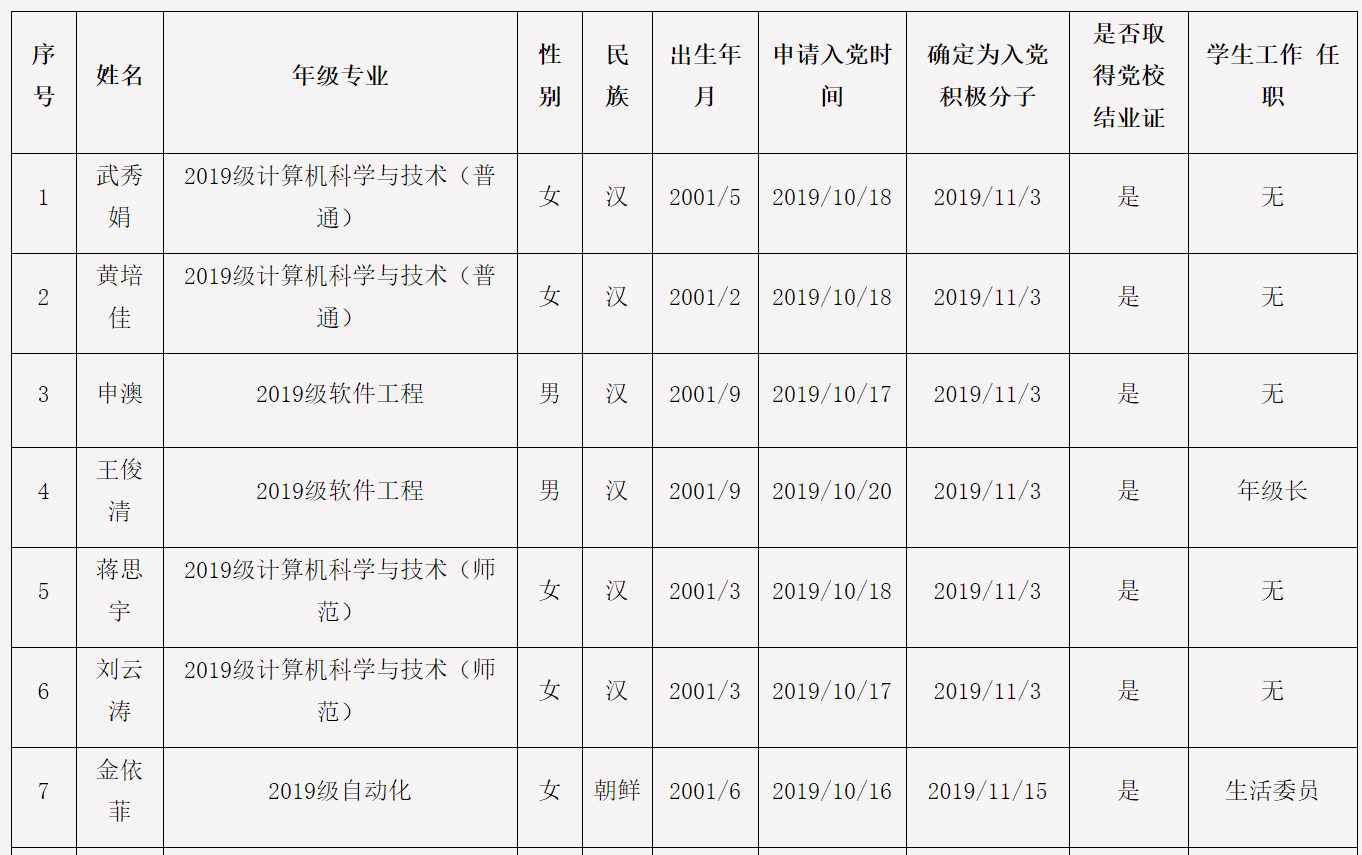 公示期满后将对发展对象进行政治审查,进一步考察培养。具体名单如下: