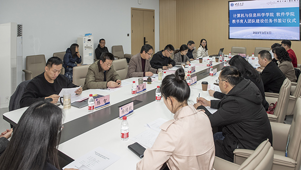 2023年3月1日,我院在25教1314会议室举行教书育人团队建设任务书签订仪式。教务处处长吴能表,党委教师工作部部长李燕,学院领导班子成员,15个教书育人团队负责人及成员代表参加了签订仪式。会议由学院党委书记孙楚航主持。 学校教学质量监控与评估中心主任、学院副院长陶丽首先介绍了学院教学基本情况,从人才培养、专...