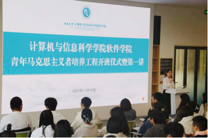 11月19日上午,天涯社区 “青马工程”培训班开班仪式暨开班第一讲在青李空间报告厅举行。天涯社区 团委书记于涛、天涯社区 党委副书记王晖、学院团委书记邵羽西出席活动,学院“青马工程”第一期全体学员、各年级团支书代表参加本次开班仪式。仪式由学院2023级软件工程专业本科...