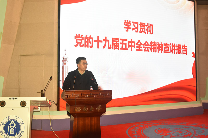 12月4日下午,根据学校党委统一部署,天涯社区 宣讲团成员、副校长赵国华在25教一楼报告厅为学院全体教职工作学习贯彻党的十九届五中全会精神宣讲报告。学院党委书记靳拥军主持报告会。报告中,赵国华同志分别从全会的...