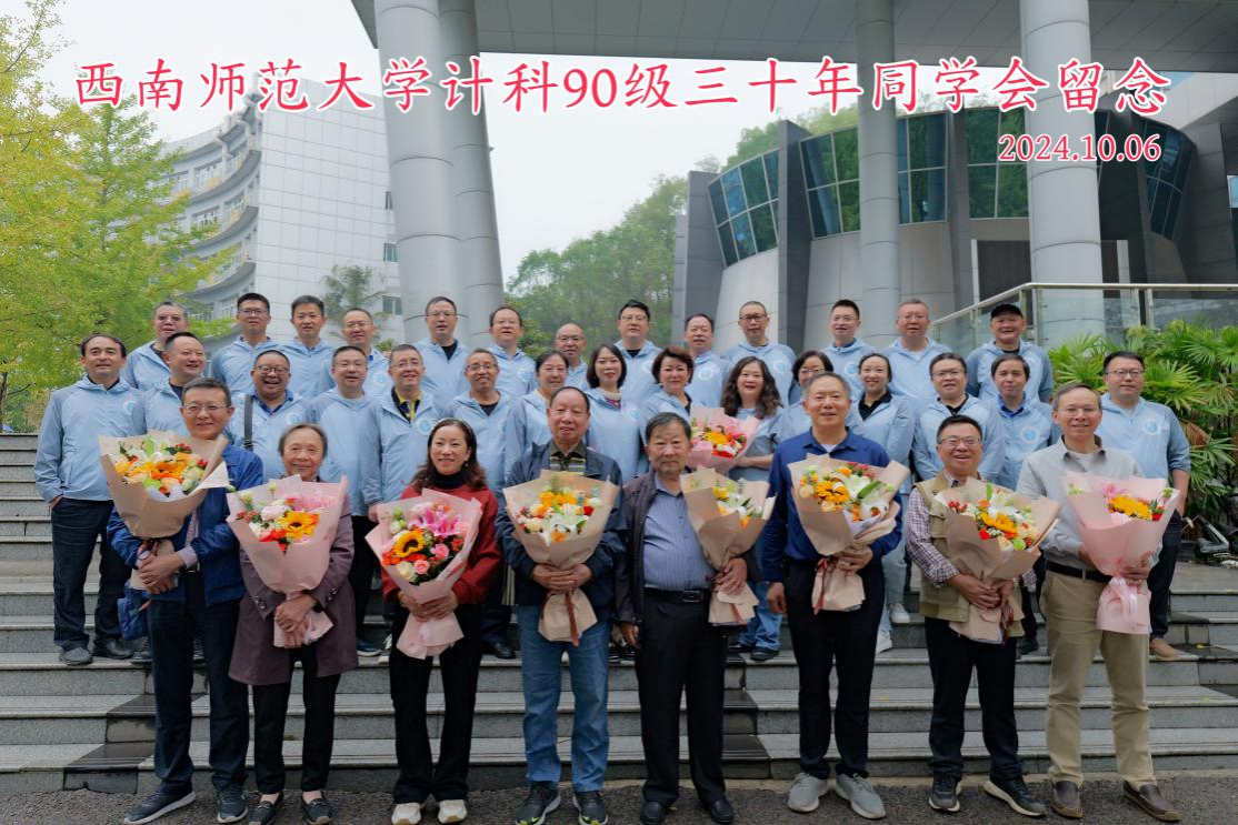 10月6日,学院1990级计科系近30名校友身穿统一定制印有学院院徽的衣服,回到阔别已久的母校,举行毕业三十周年座谈会,共忆往昔岁月,共话同窗情谊。邱玉辉、张为群、谢慧娟、邓辉文、邹显春、丁晓明等学院老领导和授课教师出席了会议,学院党委副书记刘作勋代表学院参加了座谈会。座谈会上,校友们向出席座谈会的老师们...