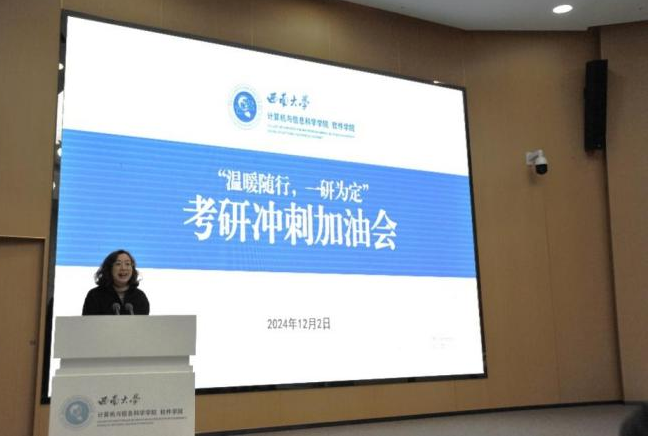 严冬时节,寒风刺骨,2025年全国硕士研究生招生考试初试备考已进入最后的冲刺阶段。为缓解同学们的备考压力,坚定考研信心,12月2日上午,学院在一楼报告厅举行“温暖随行,一研为定”考研冲刺加油会,为2021级即将参加考研的学子们送去温暖关怀和美好祝愿。院长罗辛教授、副院长廖剑伟教授、计科系主任王英老师、副主任...